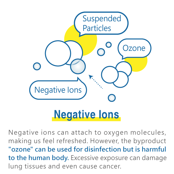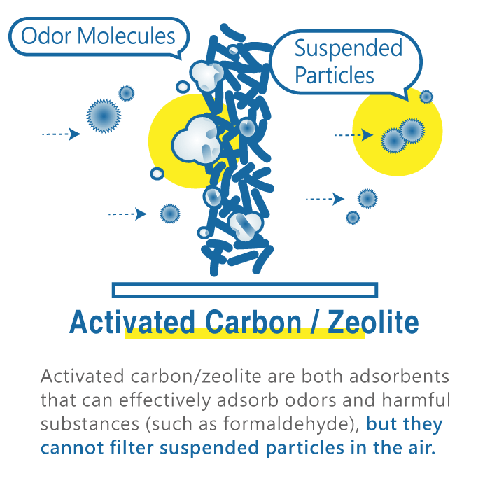 As for what advertisements call negative ions, ozone, ultraviolet light, plasma, activated carbon, and zeolite, their primary functions are in sterilization and adsorption of odors, but they cannot remove or filter fine suspended particles from the air.