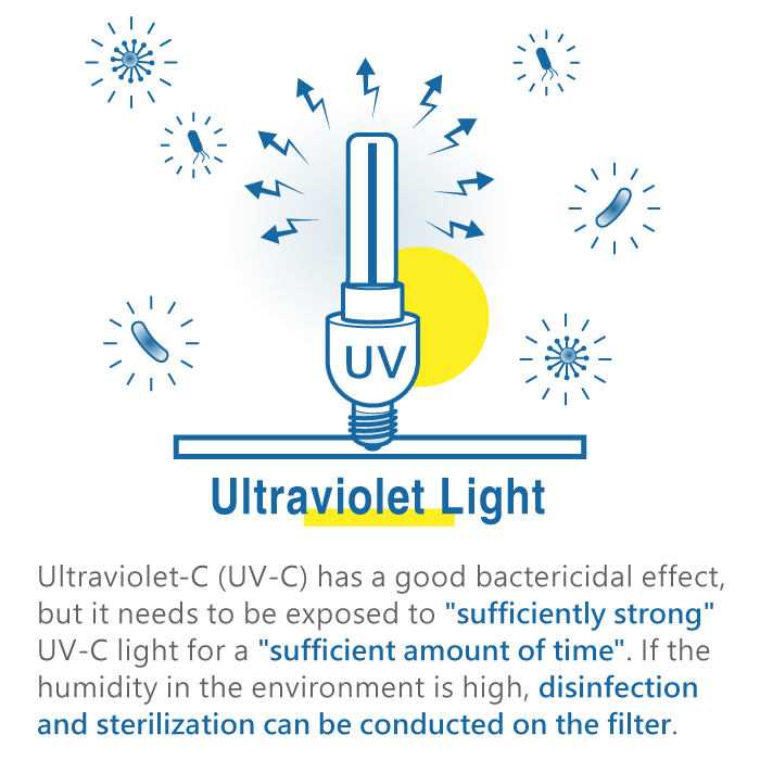 Ultraviolet-C (UVC) light has excellent sterilization effects, but to achieve sterilization, it must be exposed to "high-intensity, high-energy" ultraviolet lamps for "a considerable number of minutes." It is impossible for air purifiers to use 'high-intensity, high-energy' ultraviolet lamps, and the air passes through quickly, limiting the sterilization effect. Moreover, the majority of bacteria fall within the 0.5-10 μm range, and using just a filter method in an environment with relative humidity below 80%, microbial concentration in the air is already significantly reduced. Unless you're setting up a cleanroom or an ICU with many patients, is it necessary to make the room sterile, lowering the body's resistance to environmental conditions? Additionally, truly effective "high-intensity, high-energy" ultraviolet light has a significant impact on human health and generates a high amount of harmful ozone. Care should be exercised in their use.